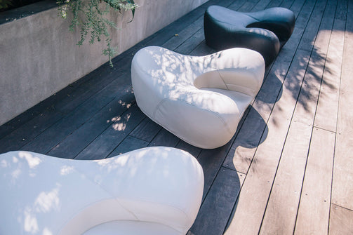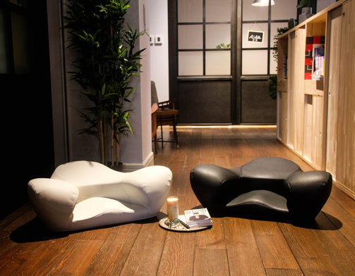 このユニークな形のチェアは、瞑想を行うアメリカ人が、普段慣れない胡座で長時間座れるように人間工学に基づきアメリカで開発されました。